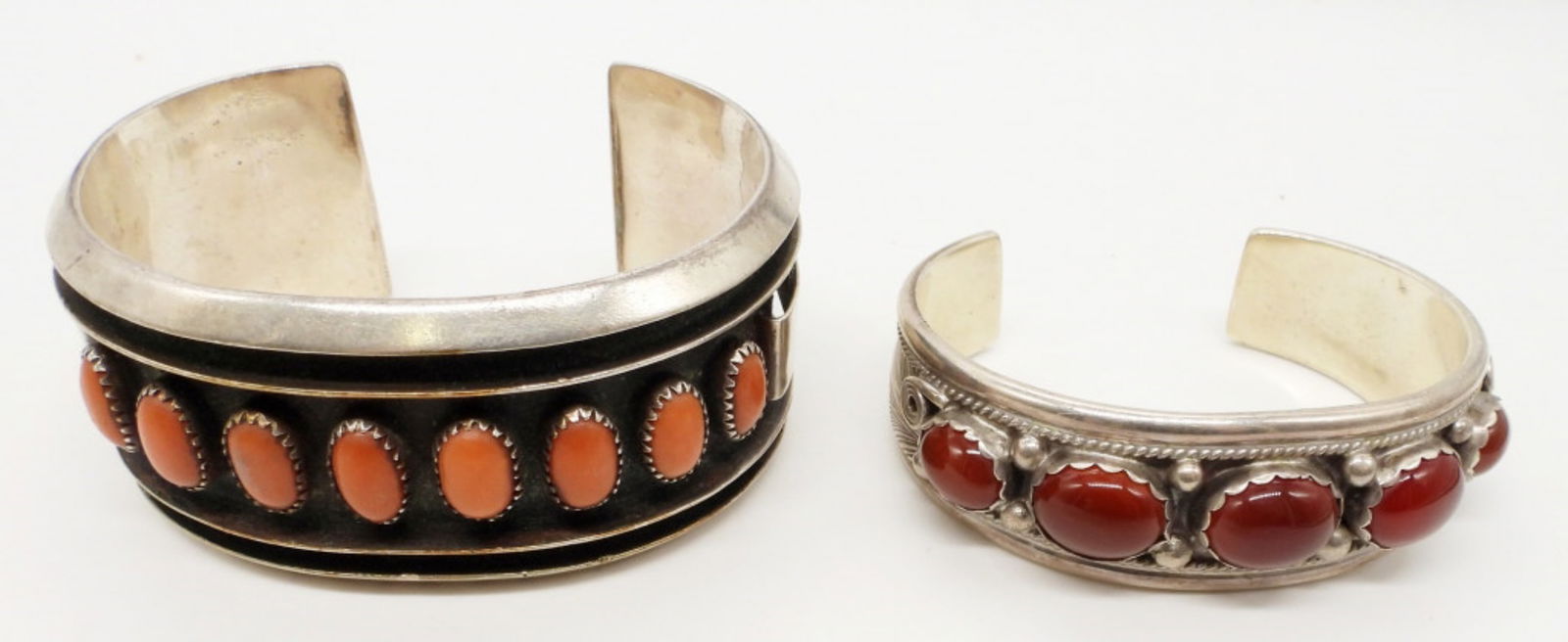 Jewelry. (2) Vintage Old Pawn Royston turquoise sterling silver cuff/bracelets with heavy stampwork.Jewelry. (2) Vintage Old Pawn Royston turquoise sterling silver cuff/bracelets with heavy stampwork. 77.65 grams. cuff w/ round stone 7" circumference w/ gap opening. cuff w/ oval stone 7 1/2" circumf