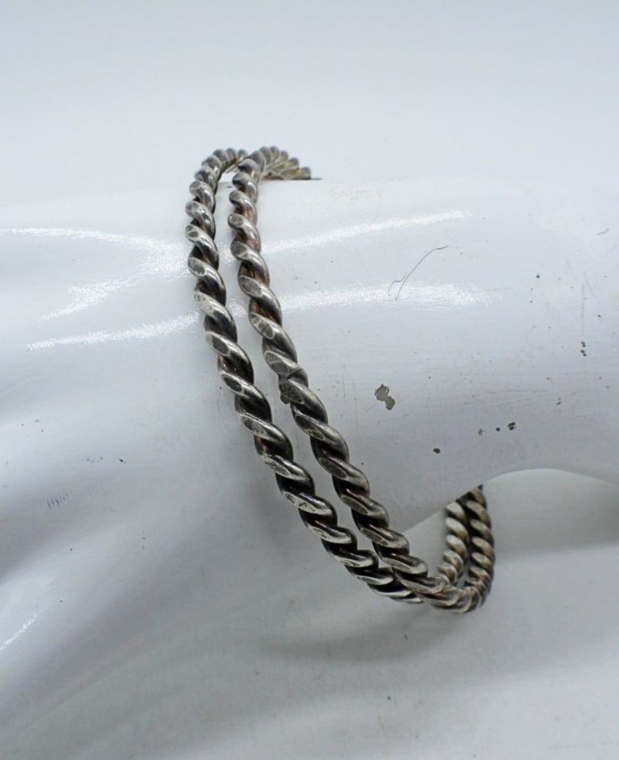 VINTAGE STERLING SILVER WOVEN ROPE BANGLE BRACELET