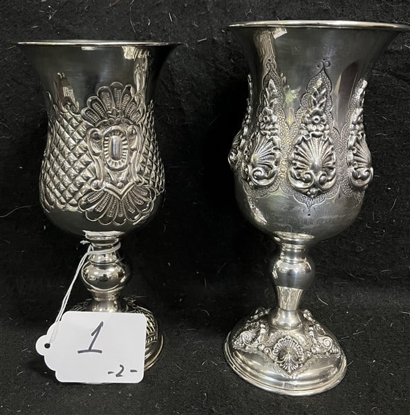 Pair of Antique Russian Engraved Sterling Silver Vodka Cups M.C.U 2.25Pair of Antique Russian Sterling Silver Vodka CupsPair Of Silver Plated Candlesticks Made In JapanFeb 25, 2026Pr. of Vintage Hordon Silver-Plated Interlocking W7 days LeftEight Sterling Silver Miniature Urn From CupsFeb 21, 2026Two Pieces of Coin Silver Hollowware by Gale and Hayden5 days LeftSet of 3 Silver 800 Pedestal CupsFeb 28, 2026Pair of Silver Stemmed Figural CupsFeb 28, 2026Metal Grapevine Chalices 6 Inches Tall310 Lots AwayJudaica Sterling Silver Kiddush Cups, 2Mar 12, 2026A Pair of Italian Silverplated GobletsFeb 21, 2026Pair of Weighted Sterling Silver Duchin Creations Candlestick Holders - 384 Grams2 days LeftSTERLING SILVER COMMUNION CUP, 7" X 5"5 days Left6.8 troy ounces .925 Sterling Silver Salt and Pepper Shakers with Glass InsertsMar 02, 2026Pewter Tankard And Two Cups6 days LeftPR SANBORN'S MEXICO STERLING SILVER GOBLETSFeb 22, 2026