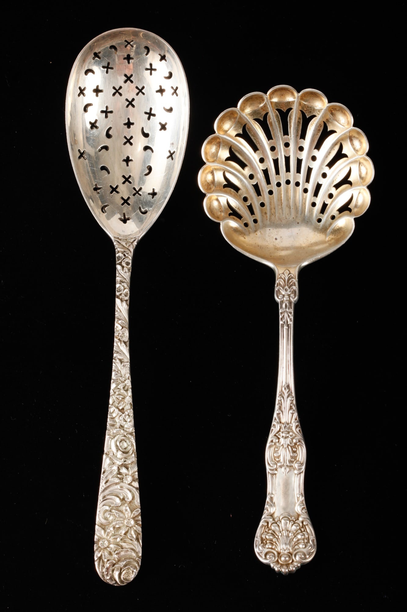 (2) STERLING SILVER SLOTTED SERVING SPOONS
