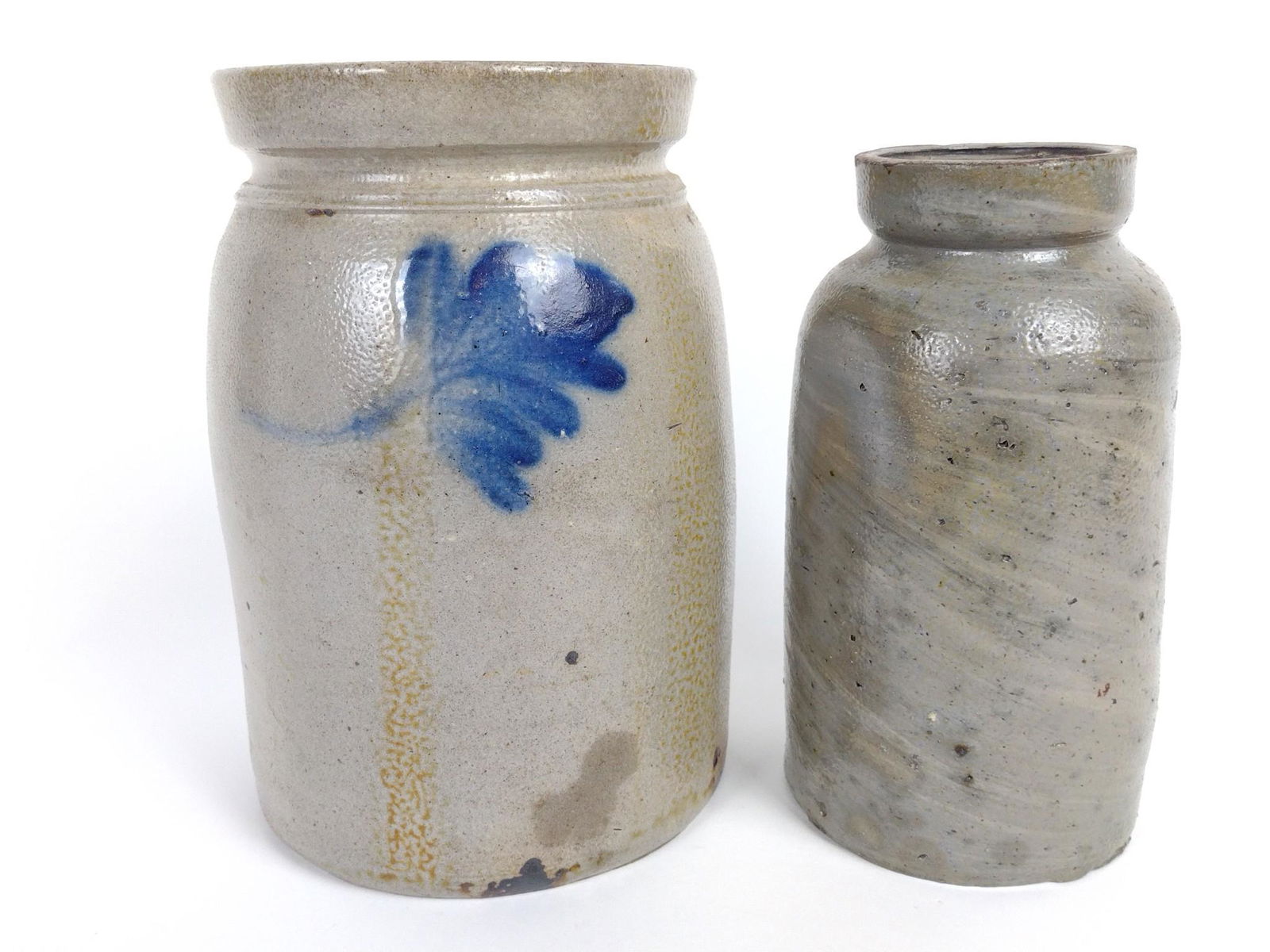 2 Stoneware Jars incl Cobalt Decorated