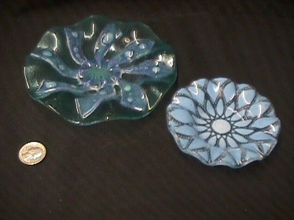 2 SYDENSTRICKER ART GLASS PLATES SMALL
