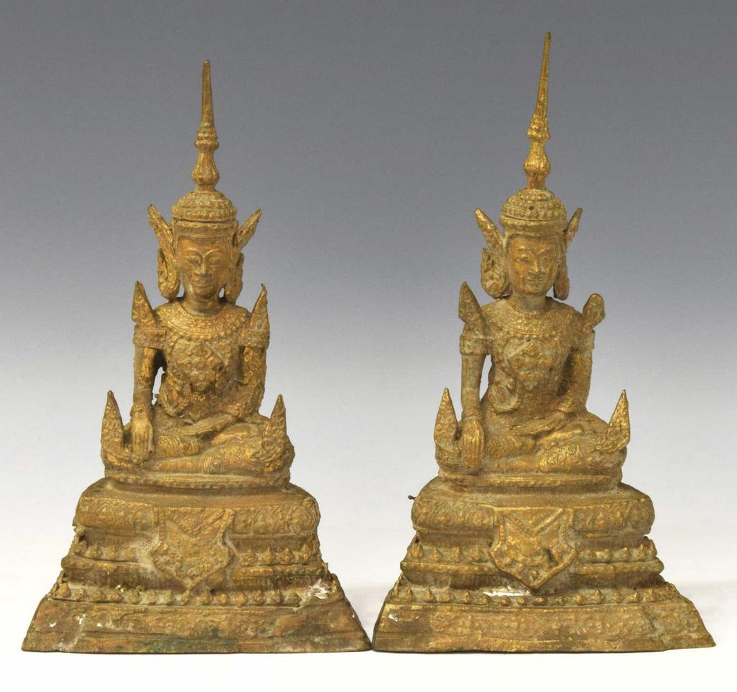 (2) THAI GILT BRONZE SEATED BUDDHAS