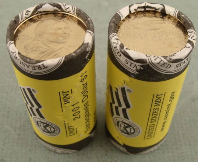 2 US Mint Wrapped Rolls Gem UNC Sacagawea 2001 D