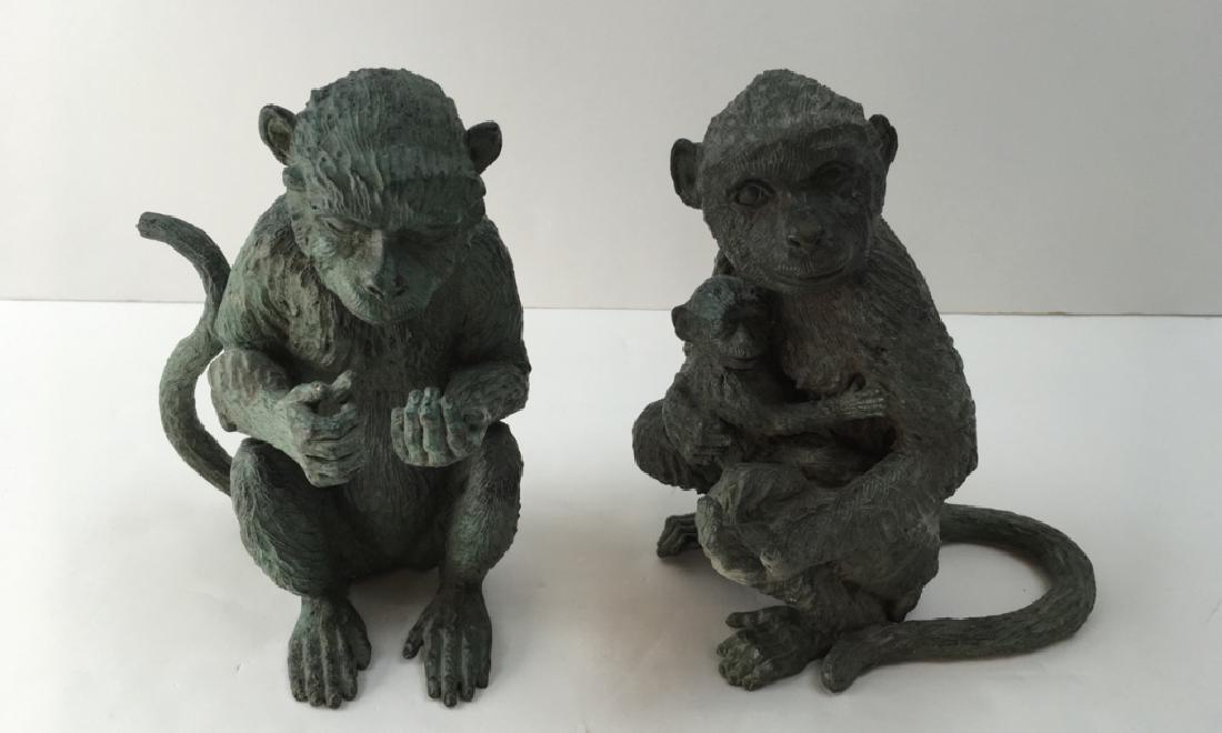 2 VERDIGRIS BRONZE MONKEYS