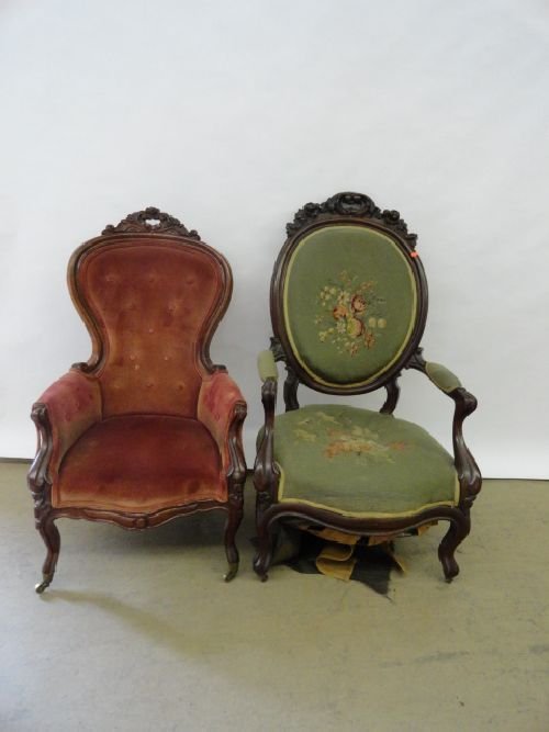 2 VICTORIAN BLACK WALNUT CHAIRS