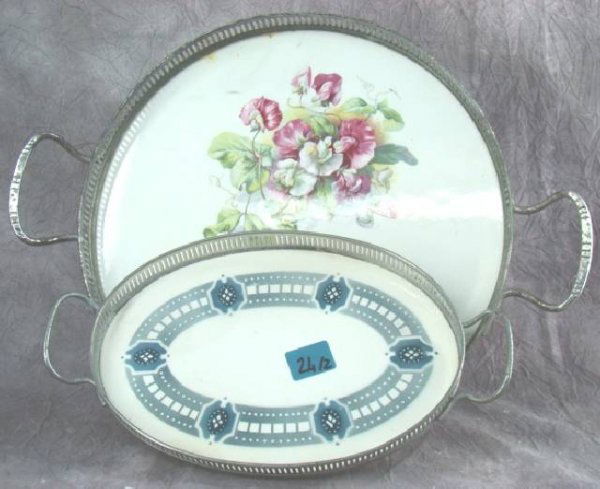 2 VINTAGE CERAMIC & PLATED BOTTLE COASTERS