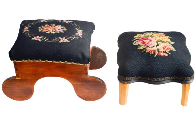 2 Vintage Needle Point Stools w Nail Head Trim