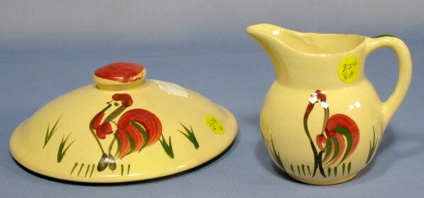2 Watt Pottery Rooster Items: Lid & Pitcher