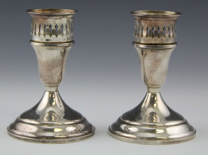 (2) WEIGHTED STERLING CANDLESTICK HOLDERS