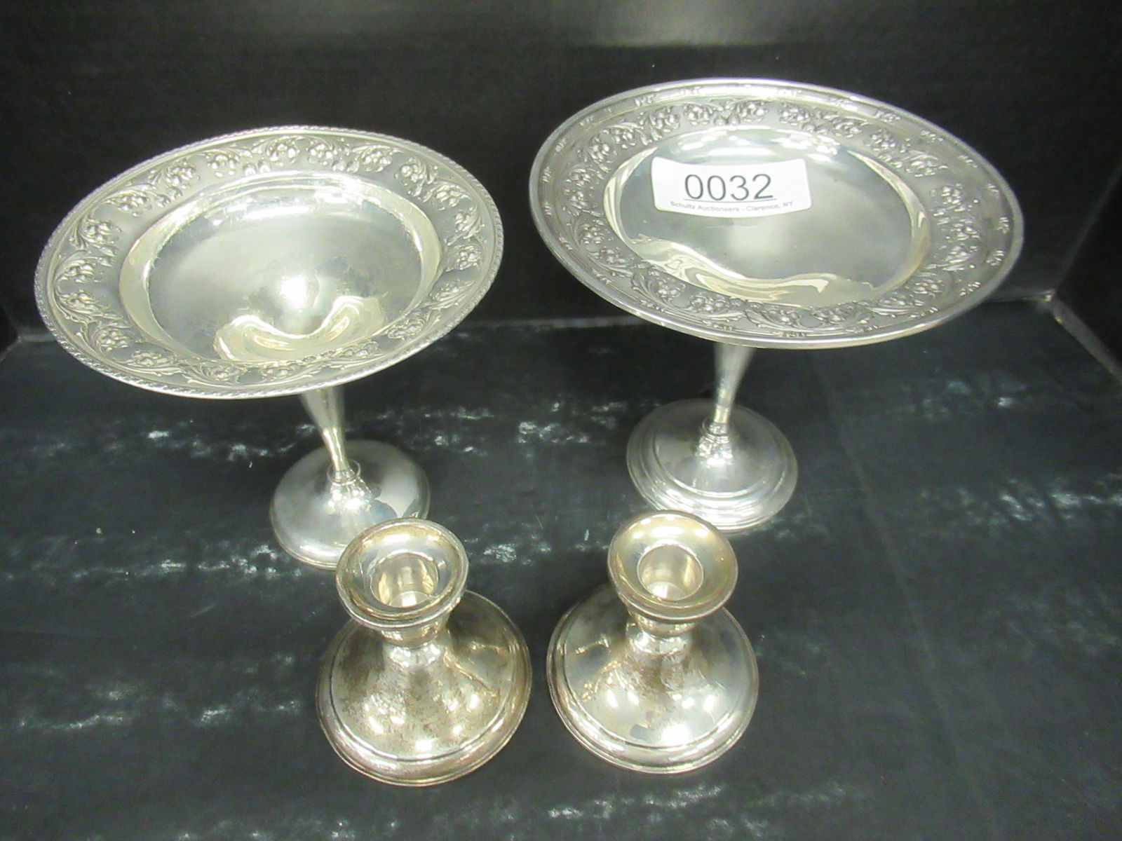 2 Weighted Sterling Compotes & Pair Candlesticks