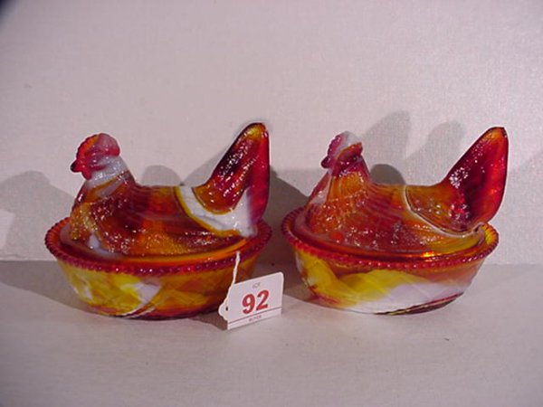 2 WESTMORLAND Multicolored Hens on Nests