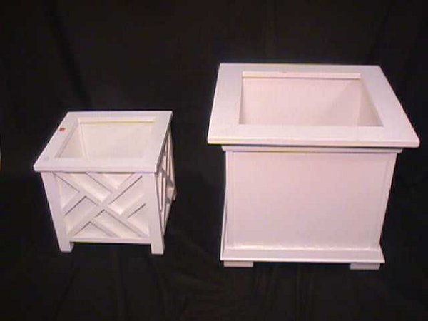 2 WHITE PAINTED WOOD PLANTERS LARGE