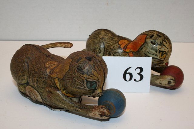 2 Windup Cats pushing balls
