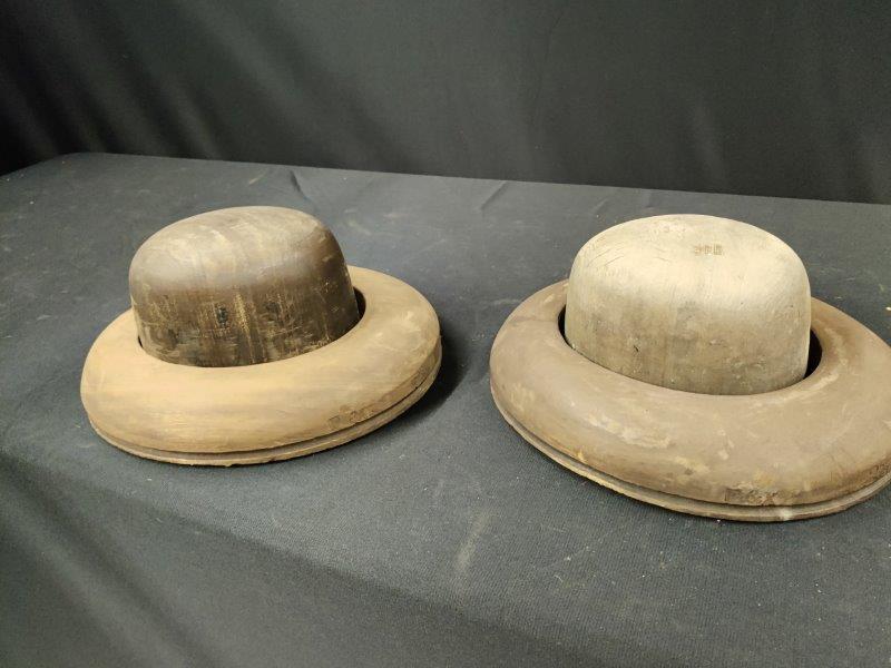 2 wooden hat press forms
