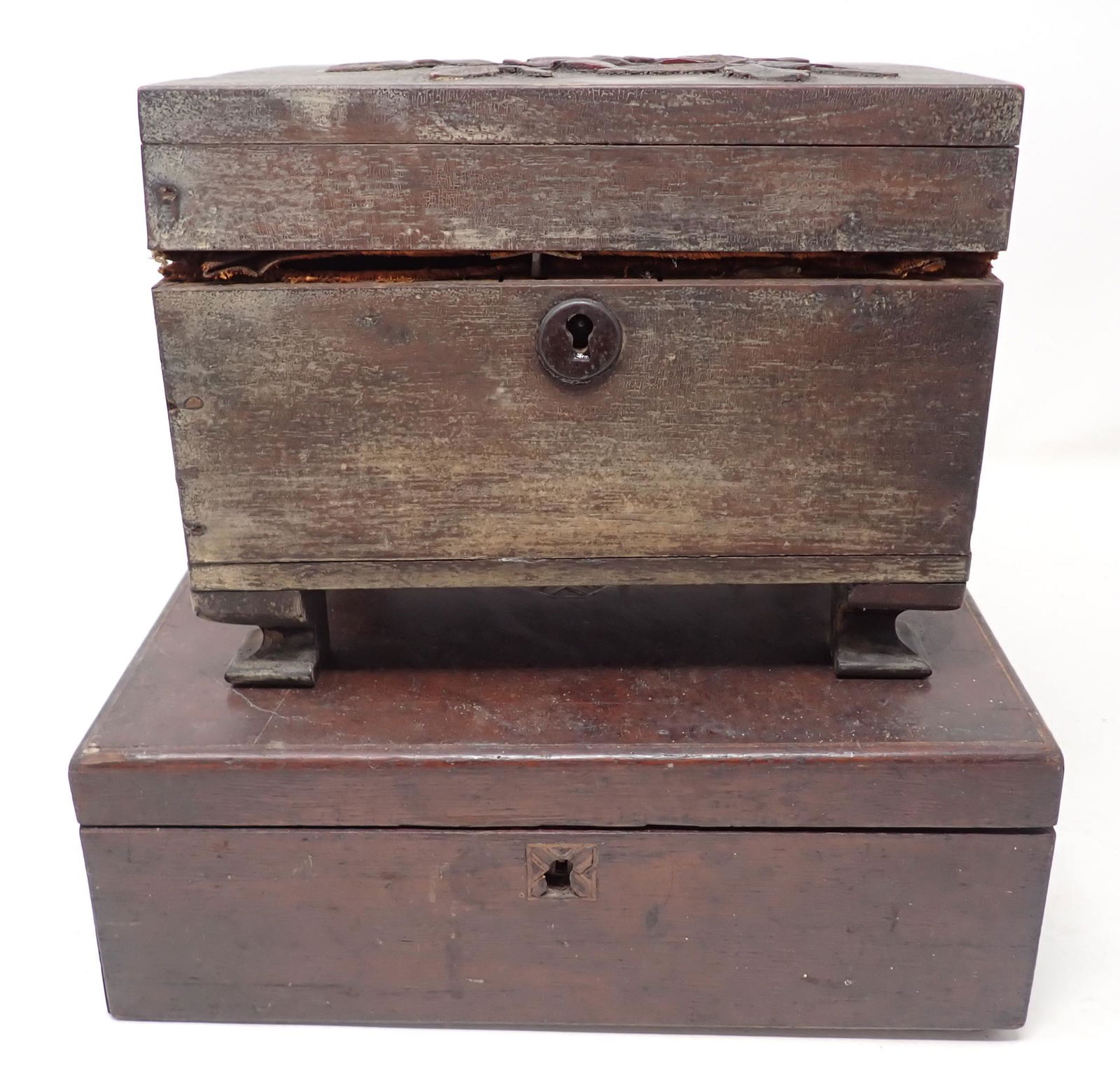 FOUR CARVED WOODEN BOXES 19th Century Lengths from 7.5" to 20".