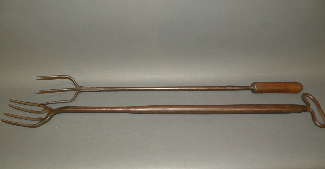 2 wrought iron fireplace forks