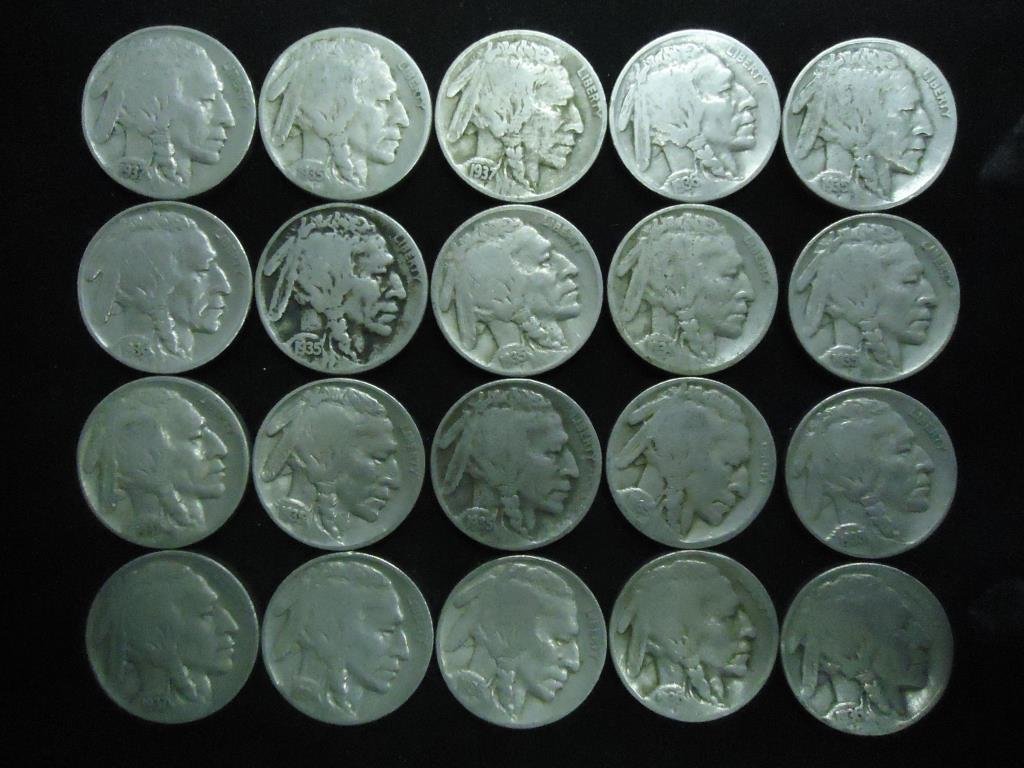 20 ASSORTED FULL DATE 1930'S BUFFALO NICKELS