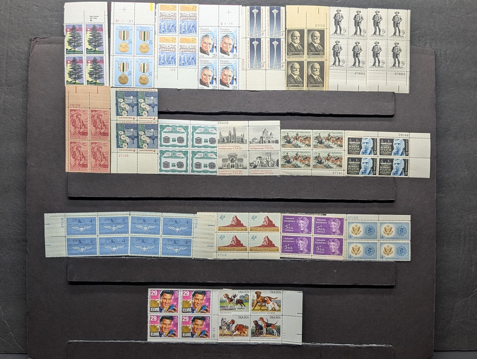 (20) Assorted U.S. Plate Blocks, All Mint Original Gum, Never Hinged