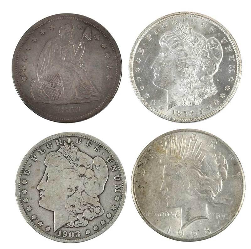 [5 Coins] 1826-1915 U.S. Coin Lot 25C-50C4 days LeftThree Half Dollar Coin Lot - 1836 Capped Bust, 1876-S Liberty Seated, 1945 Walking LibertyMar 28, 2026Lot of 12 Morgan Silver Dollars | Mixed Dates & Mints | 1878–1899 | Original U.S. Silver CoinsApr 22, 202613 Coins, 1902, 1906-O, 1907, 1911, 1912-D, 1941, 1944, 1947, 1964 (5)Mar 28, 2026(3) Antique United States Silver CoinsMar 24, 20261889 & 1921 US Silver Morgan Dollars, 32 days Left11 Coins, 4 1892 Columbian Halves and 7 1893 Columbian HalvesMar 28, 2026Grouping of Early American Coins3 days Left1878 to 1889 Morgan Silver Dollars (4)Mar 28, 2026Group (4) 1881 Morgan Silver DollarMar 31, 2026Group of (6) Morgan Silver DollarsMar 28, 2026ASSORTED 90% SILVER MORGAN/PEACE DOLLARS - (8)Mar 28, 20261896 to 1921 Morgan Silver Dollars (4)Mar 28, 2026Group of (6) 1896 Morgan Silver DollarsMar 28, 2026A Trio of US 1880 and 1881 Morgan DollarsApr 16, 2026ASSORTED 90% SILVER MORGAN/PEACE DOLLARS - (8)Mar 28, 2026