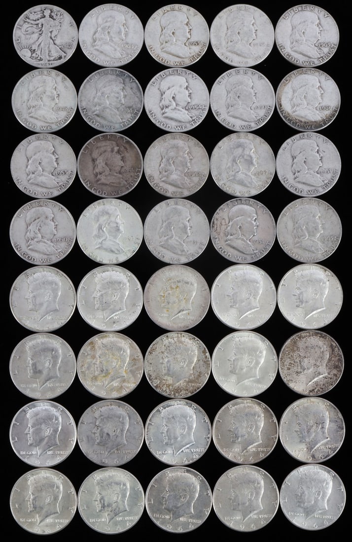 US Silver Half Dollar .50c Coin Collection 27p LOT5 days LeftFranklin Half Dollars 90% Silver Lot of 10 Collectable Coins Total Weight Approximately 125 Grams or6 days Left$2 FACE VALUE OF PRE-1964 ROOSEVELT DIMES SILVER5 days Left$10 FACE US SILVER CONSTITUTIONAL 40% COINS5 days Left$10 FACE US SILVER CONSTITUTIONAL 40% COINS5 days LeftFranklin and Walking Liberty Silver Half Dollars7 days LeftFranklin and Walking Liberty Silver Half Dollars6 days LeftRoll of 20 1963 Franklin Half Dollars, VF-AU ConditionMar 28, 2026Roll of 20 Various Date Franklin Half Dollars, VF-AU ConditionMar 28, 2026Roll of 20 Various Date Franklin Half Dollars, VF-AU ConditionMar 28, 2026Roll of 20 Various Date Franklin Half Dollars, VF-AU ConditionMar 28, 2026Roll of 20 Various Date Franklin Half Dollars, VF-AU ConditionMar 28, 2026Roll of 20 Various Date Franklin Half Dollars, VF-AU ConditionMar 28, 2026US 1958-1963 Franklin Half Dollars, 90% Silver14 Various Date Franklin Halves, F-XF Condition and 1 ProofMar 28, 202629 U.S. Silver Half DollarsMar 20, 2026