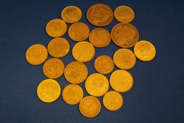 20 FOREIGN GOLD COLOR COINS