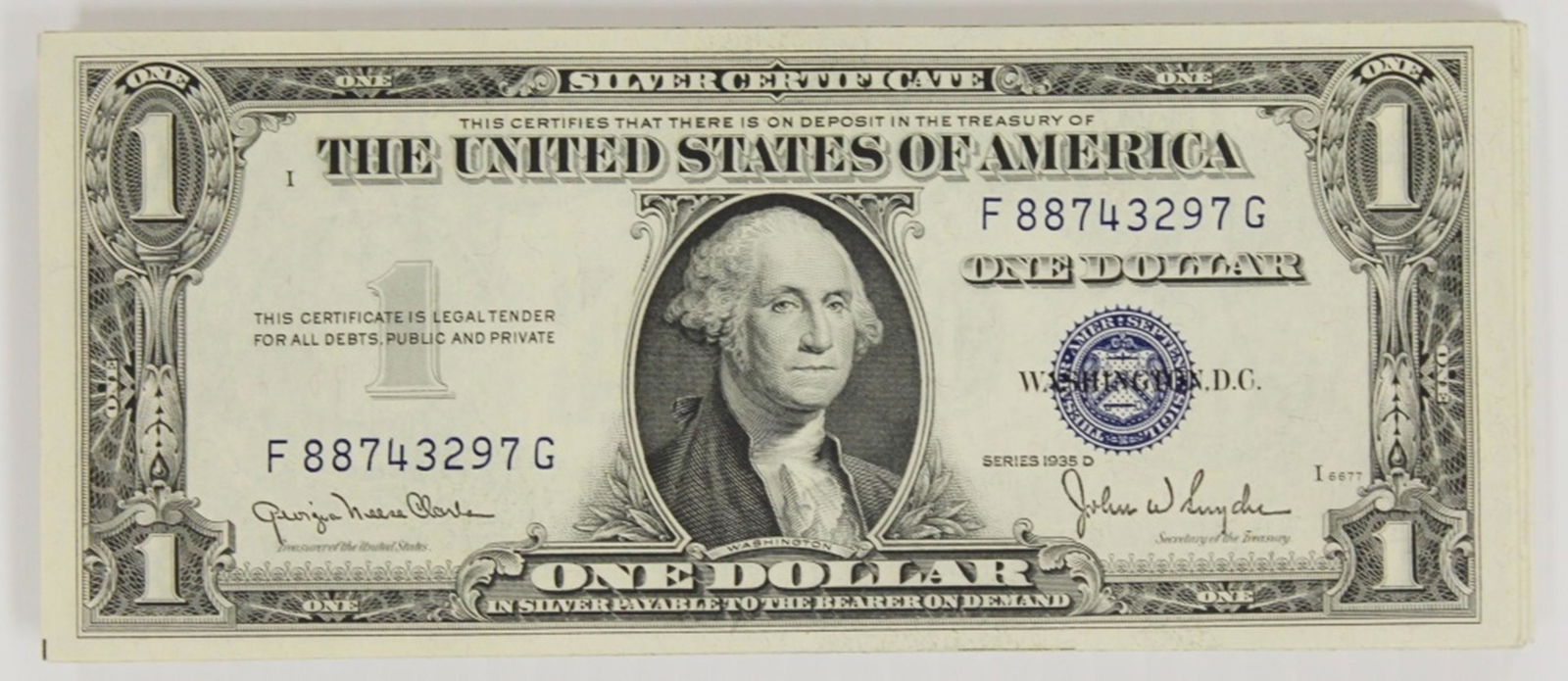 Sold20 $1.00 Silver CertificatesIncludes five 1935-A and fifteen 1935-D. Almost uncirculated to uncirculated. IMPORTANT: Before bidding, please read the terms and conditions. When you registered for the auction you agreed to these tSee Sold Price