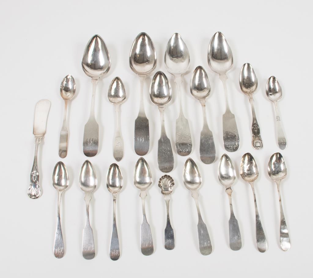 Lot Of Six Mixed Sterling Silver Flatware ItemsFeb 28, 2026Lot Of Six Mixed Pattern Sterling Silver TeaspoonsFeb 28, 2026Lot Of Six Mixed Pattern Sterling Silver TeaspoonsFeb 28, 2026Lot Of Ten Mixed Pattern Sterling Silver Flatware ItemsFeb 28, 202619PC LOT OF STERLING AND SILVER SPOONS, 25 T.O.W.Mar 07, 2026Lot of silver utensils. To include: continental lion handle spoon, shaped bowl serving spoon,Mar 01, 2026Sterling Flatware Including Mustard & Salt SpoonsMar 07, 2026International Silver Co. Sterling Silver "Royal Danish" Pattern Flatware Service5 days LeftInternational Sterling Silver "Wild Rose" Flatware 686 GramsMar 28, 2026Group of George III Sterling Silver Flatware by Hester BatemanMar 16, 2026Lunt Monticello pattern sterling silver flatware and serving pieces, 25pc., 19.482ozt. 10"Long x 12 days LeftNew England Coin Silver SpoonsFeb 27, 2026Group of Charleston Silver FlatwareMar 16, 2026Group of Coin Silver Spoons5 days LeftGorham sterling silver Versailles / Mythologique Art Nouveau flatware and serving pieces, 15pc.,2 days Left14 Warrington and W.G. Forbes Coin Silver SpoonsFeb 27, 2026