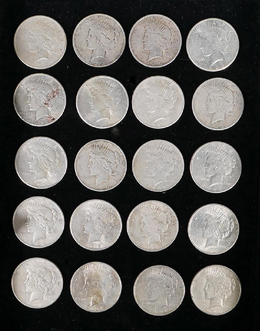 20 US Peace Silver Dollars, Dates/Conditions Vary