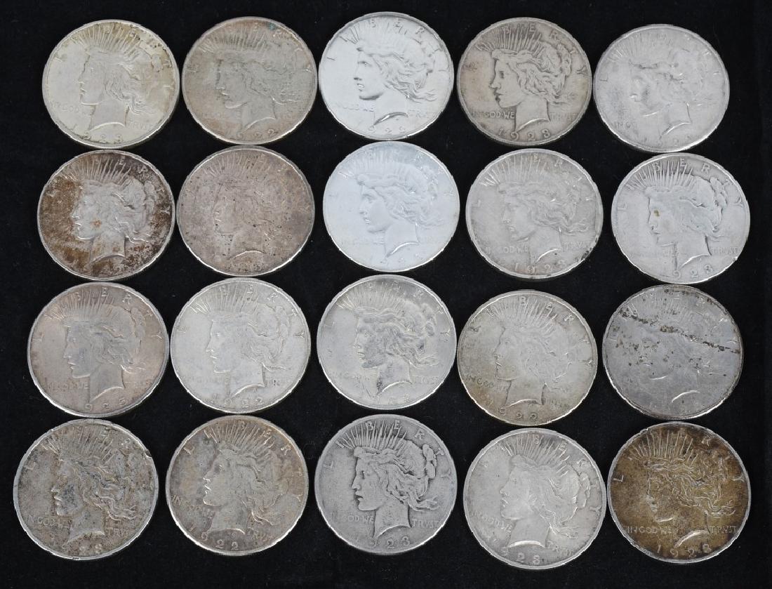 20- US PEACE SILVER DOLLARS -XF-AU
