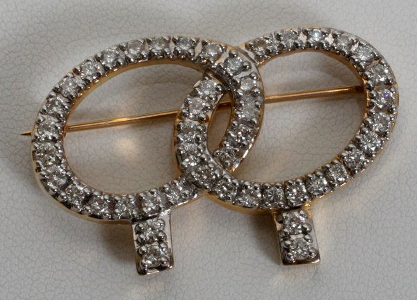 Vintage Diamond Double Circle Pin in 14K Yellow Gold