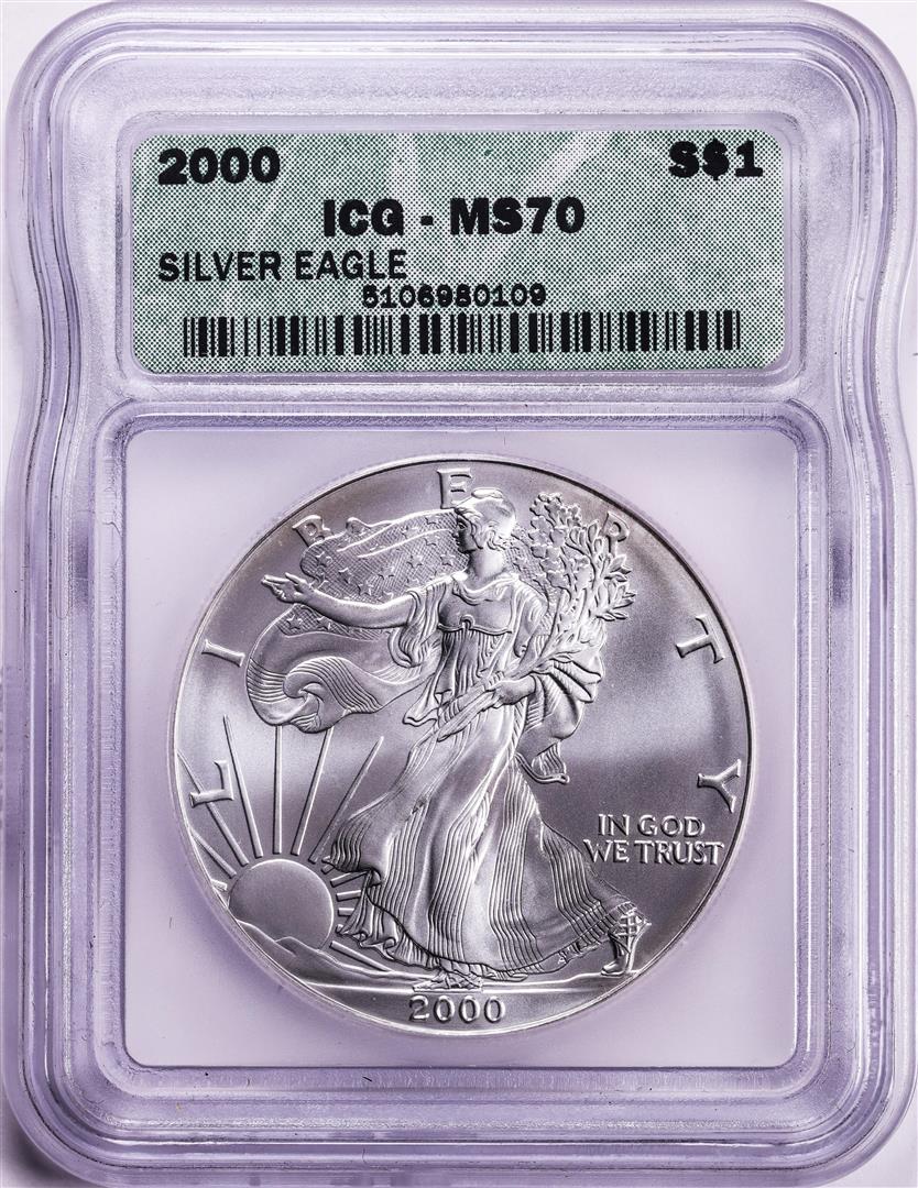2000 $1 American Silver Eagle Coin Icg Ms70