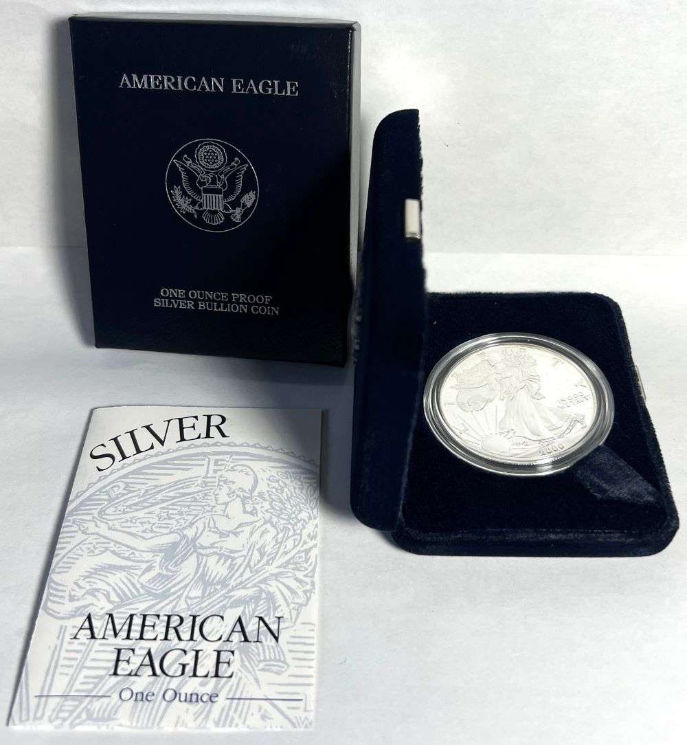 Sold2000 P American Silver Eagle Proof2000 P American Silver Eagle Proof - with box and papersPlease ask questions & read terms and conditions before bidding.See Sold Price