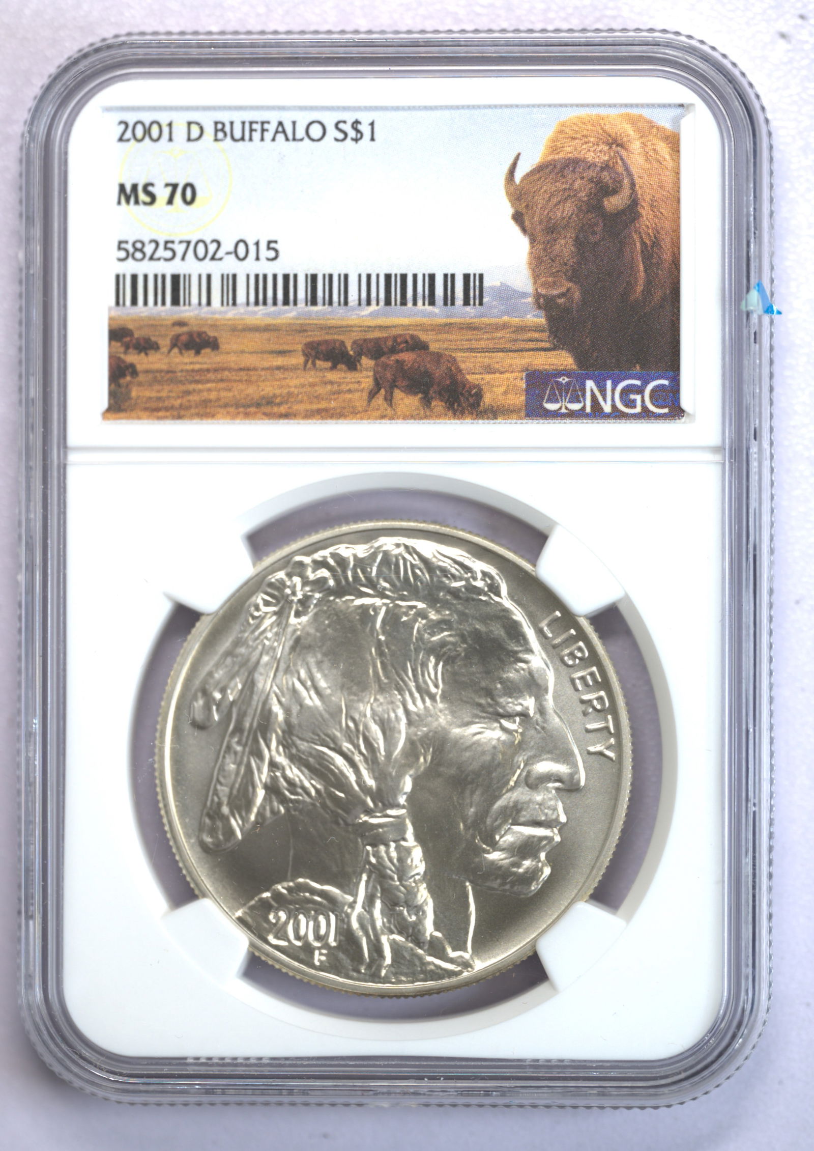 2001-D Silver Buffalo NGC MS 70 Buffalo Label