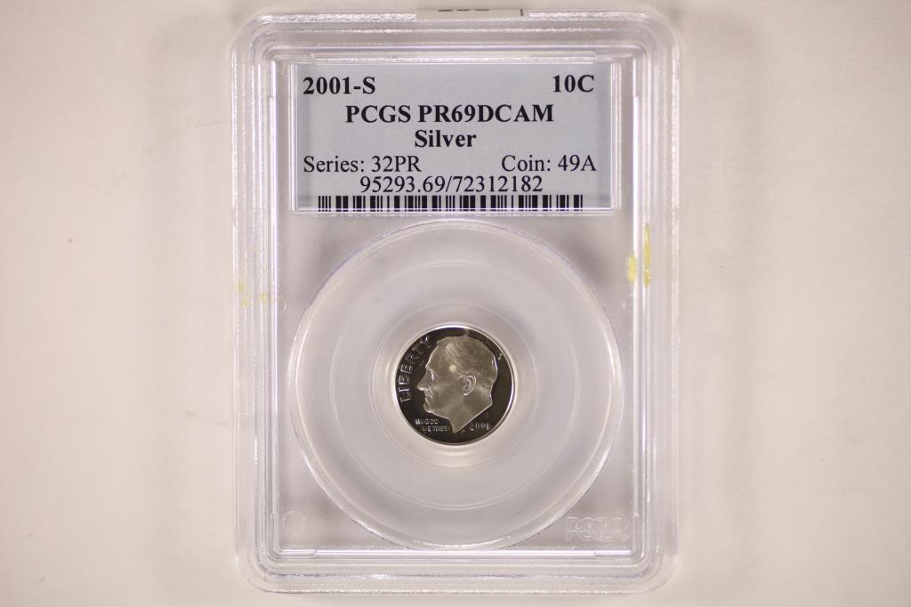 2001-S SILVER ROOSEVELT DIME PCGS PR69 DCAM