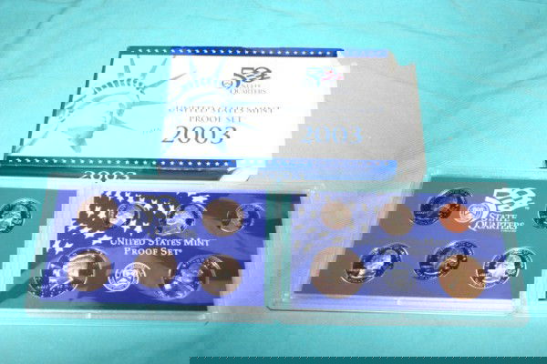 Sold2003 Mint Proof Set, 10 Coins Inside!2003 Mint Proof Set, 10 Coins Inside!. Original packaging: The 2003-S Proof Set comes in two cases. One case contains the Cent, Nickel, Dime, Half Dollar and Dollar; the other case contains the yearâSee Sold Price