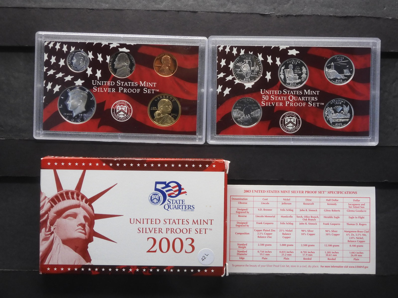 2003 United States Mint Proof Set Group (15 Coins Total, Including Two State Quarter Sets)Stevens Auction Company4.5(162)$10(1 bid)10 hrs Left
