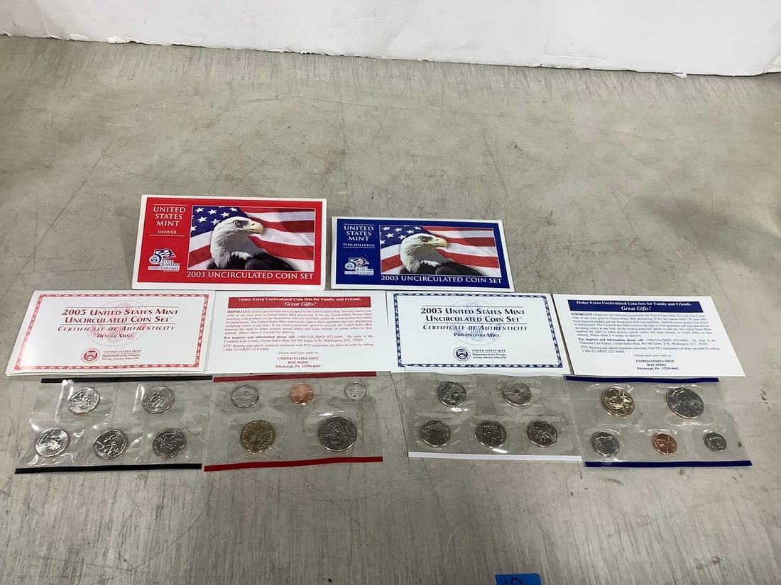 2003-S U.S. Mint 90%-Silver 10-Coin Proof SetMar 19, 2026Six U.S. Mint Uncirculated Coin Sets - (1 Each) 2004-D & P, 2005-D & P, 2006-D & P3 days Left2009 US Mint Proof Set4 days LeftFive U.S. Mint Uncirculated Coin Sets - 1999-D, 2001-P, 2002-D, 2002-P, 2004-P3 days LeftSix U.S. Mint Uncirculated Coin Sets - (1 Each) 1999-D & P, 2000-D & P, 2003-D & P3 days LeftSix U.S. Mint Commemorative Proof Coin Sets - 2002-20073 days LeftU.S. Mint Uncirculated setsMar 20, 20262006 US Mint Proof Set in OMP2 days Left2006 US Mint Proof Set in OMP2 days Left2006 US Mint Proof Set in OMP2 days LeftSix U.S. Mint Commemorative Uncirculated Coin Sets - 1990, 1991, 1994, 1996-19983 days Left2003 US Mint Proof Set in OMP2 days Left2003 US Mint Proof Set in OMP2 days Left2003 US Mint Proof Set in OMP2 days LeftA Collection of United States Mint Proof and Uncirculated Coin SetsMar 26, 2026Fifty Five United States Mint SetsMar 20, 2026