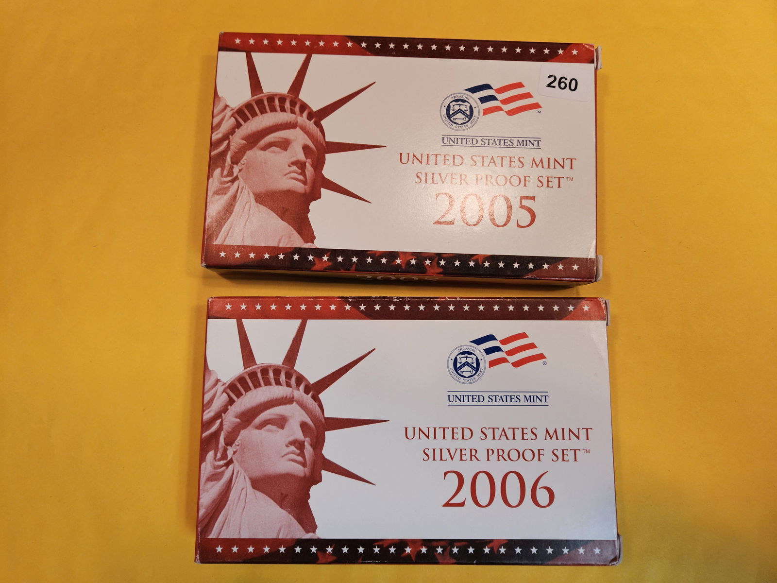 Sold2005 & 2006 US Mint Silver Proof Sets2005 & 2006 US Mint Silver Proof Sets - Please ask questions & read terms and conditions before bidding.See Sold Price