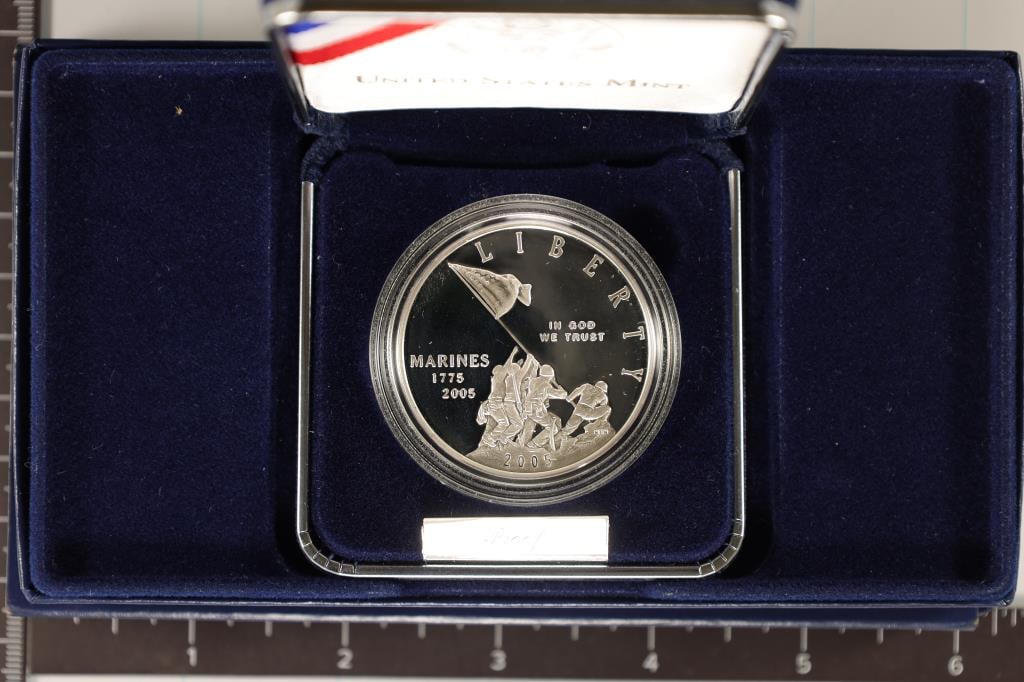 2005-P US PROOF SILVER DOLLAR "MARINE CORP 230TH