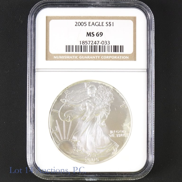 Lot of (3) NGC MS69 American Silver Eagles (2002, 2003, 2004) - $1 SilverGrandview Art & Auctions4.3(1)$100(1 bid)Mar 12, 2026