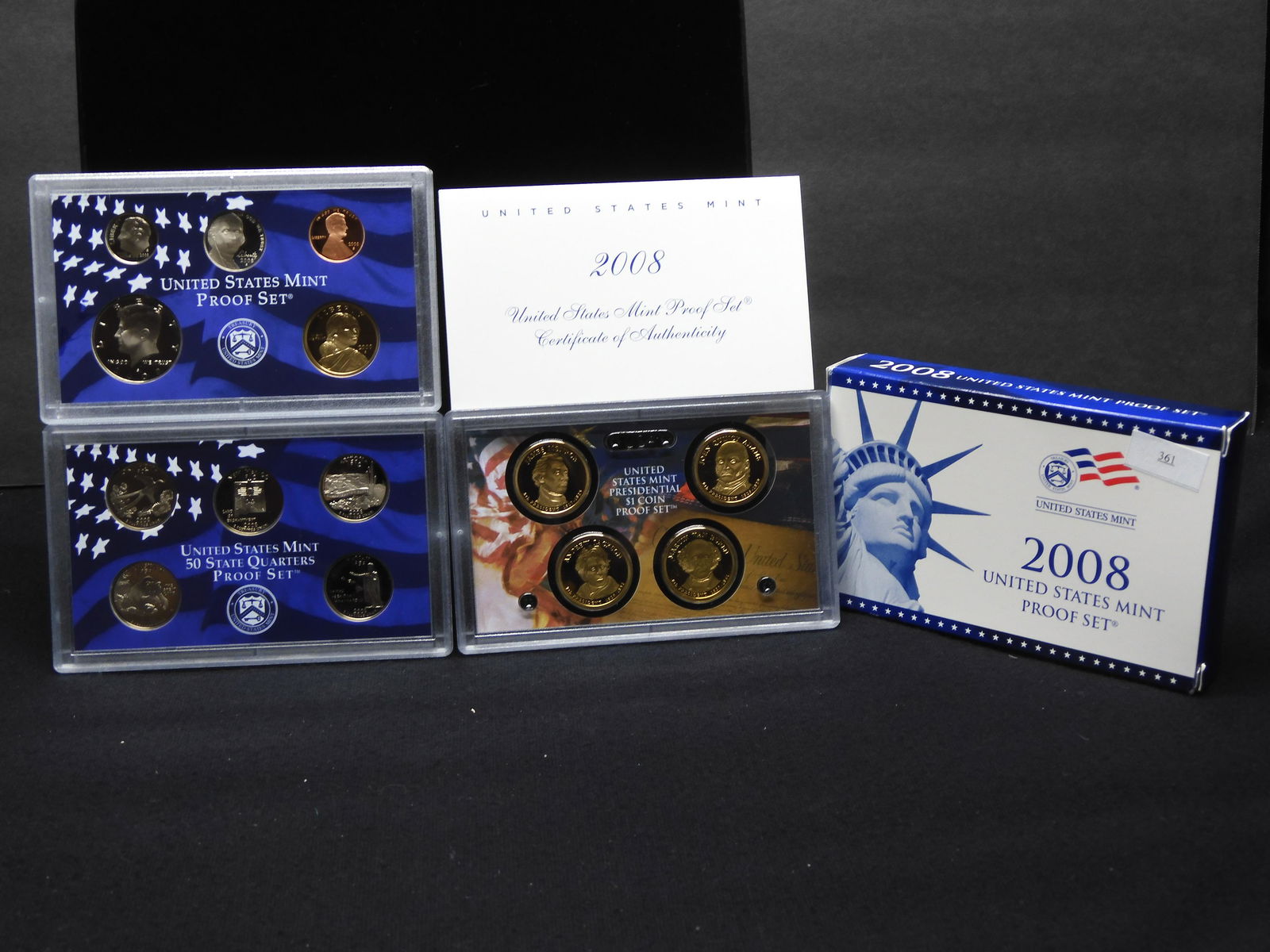 Sold2008 US Mint Presidential $1 (4-Coin) Proof Set OGPWinner shall receive the exact (4-Coin) set shown here. (EM/B)See Sold Price