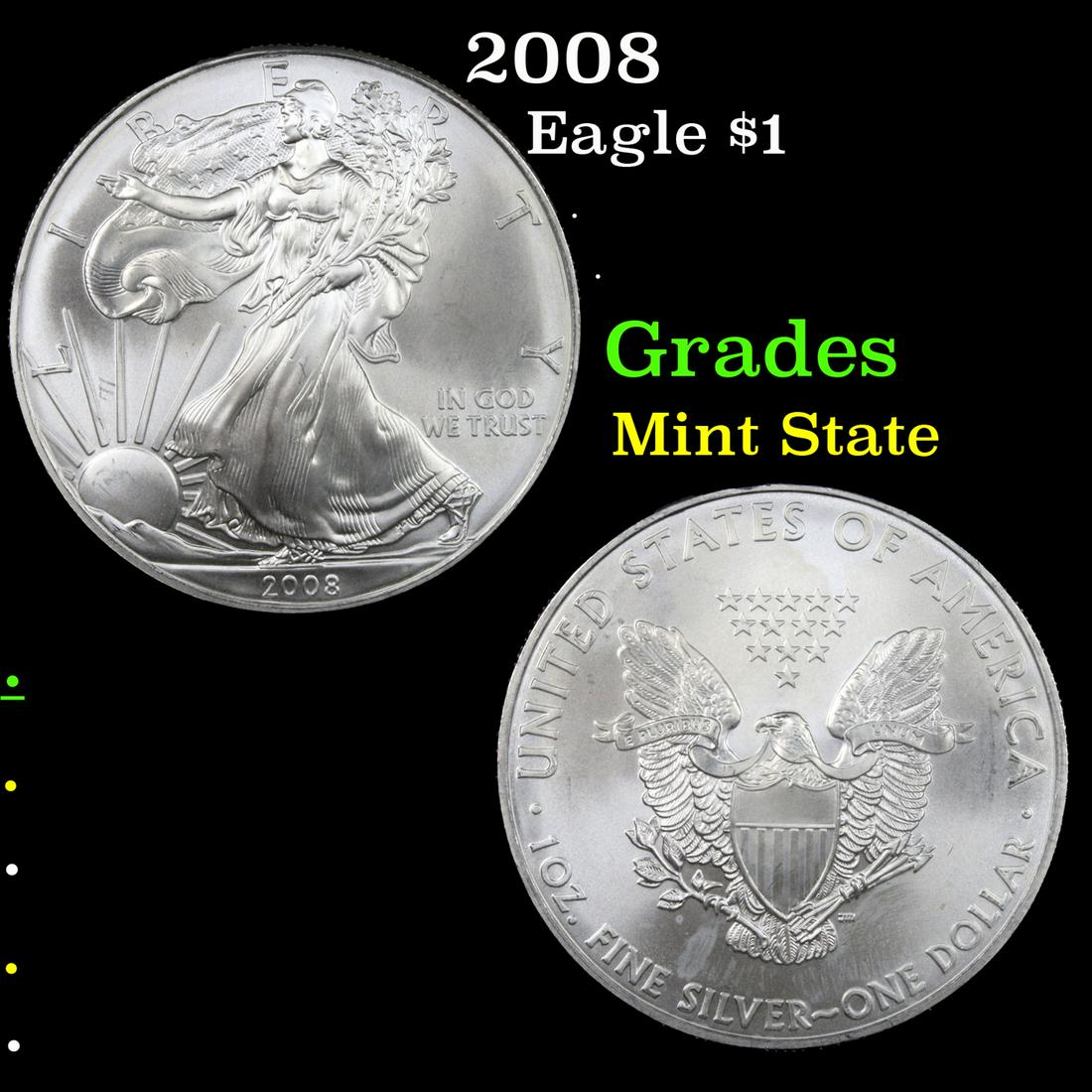 2008 Silver Eagle Dollar $1 Grades Mint State