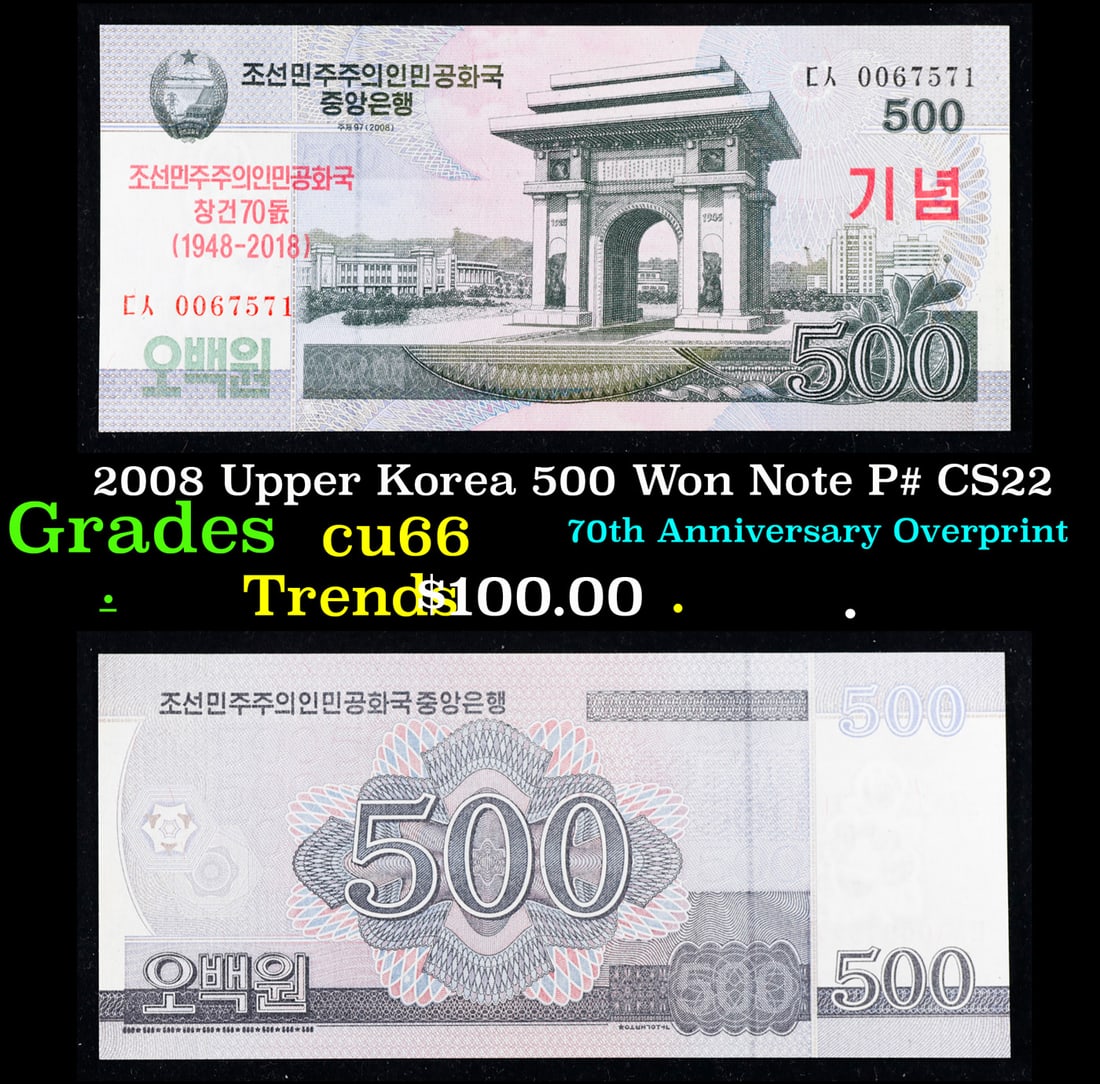 2008 Upper Korea 500 Won Note P# CS22 Grades Gem+ CU