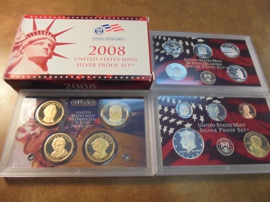 Sold2008 US SILVER PROOF SET (WITH BOX) 14 PIECES INCLUDESINCLUDES PRESIDENTIAL DOLLARSSee Sold Price