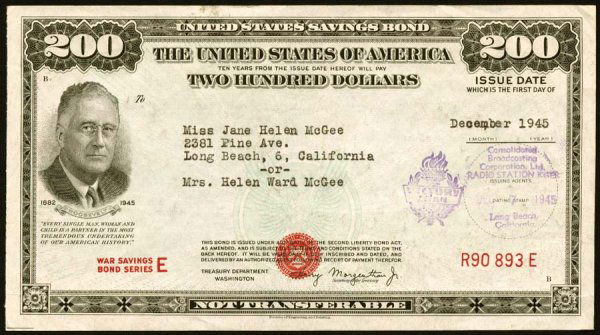 $200 United States War Bond Series E De