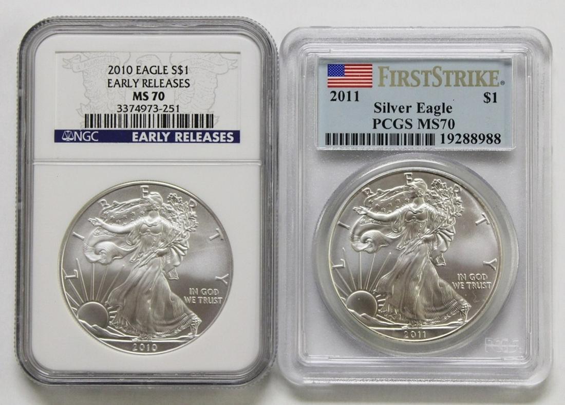 2010 AND 2011 MS 70 AMERICAN SILVER EAGLES