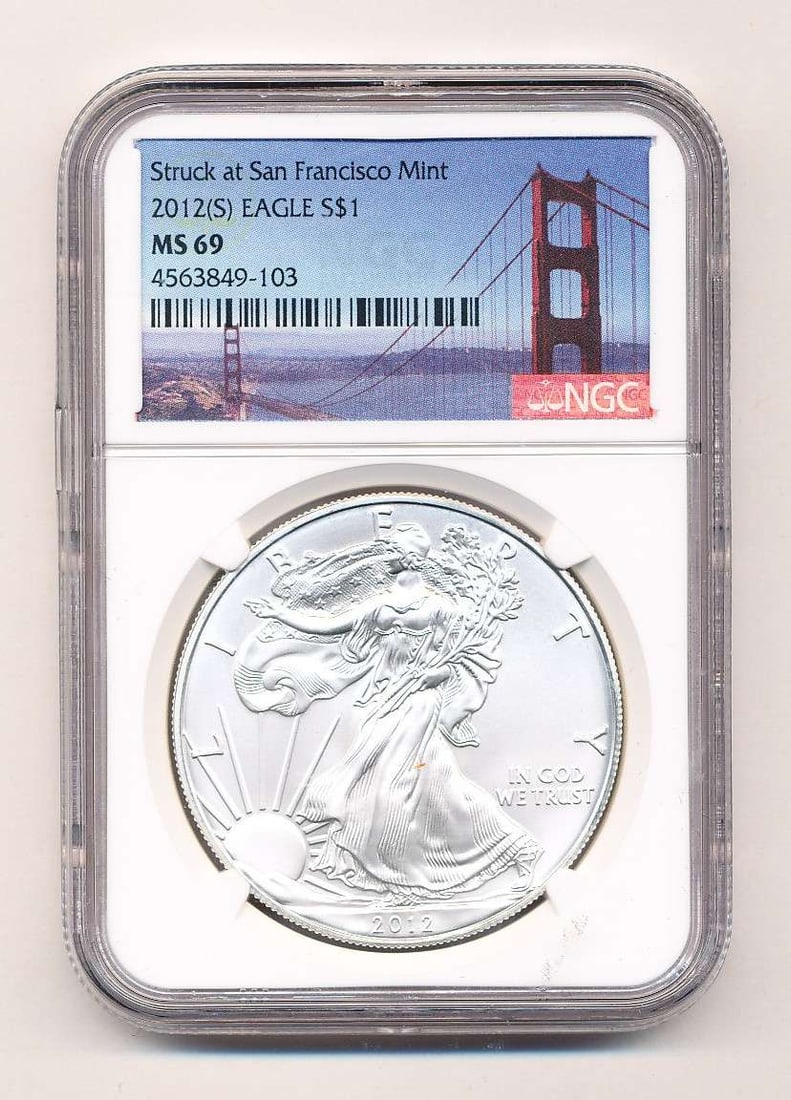 Sold2012-S Silver $1 American Eagle FR NGC MS692012-S Silver $1 American Eagle first release NGC MS69 IMPORTANT: Before bidding, please read the terms and conditions. When you registered for the auction you agreed to these terms and will be requirSee Sold Price