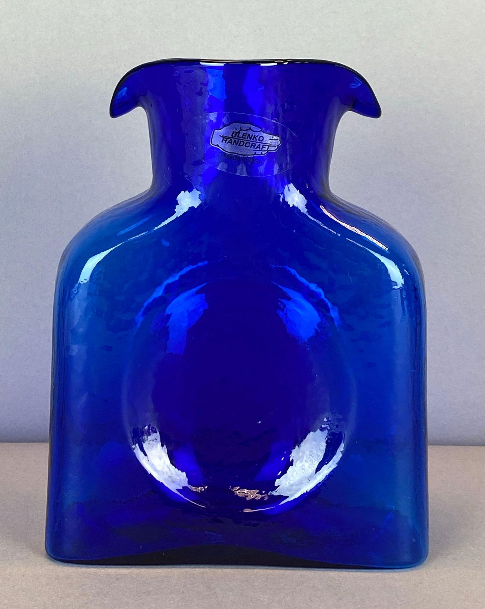 2014 Blenko Walter Blenko Signed Cobalt Textured Glass Double Pitcher