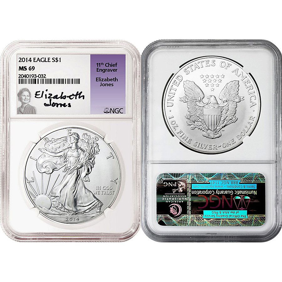 2014 Silver Eagle MS69 NGC - Elizabeth Jones Label